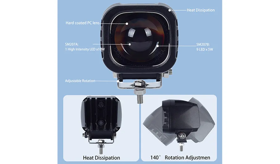 Built for industrial tough use, the SM207B features a sturdy diecast aluminum housing that shrugs off impacts, debris, and vibrations. Its PC lens maintains clarity over time, resisting UV rays, chemicals, and scratches—so the light stays bright and reliable. EMC approval ensures no interference with forklift electronics (like navigation or lift controls), while IP6K9K waterproofing means it works flawlessly, whether exposed to dust, heavy rain, or high-pressure washes.