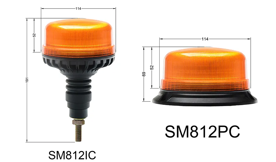 The SM812C Series micro beacon is engineered for heavy-duty vehicle safety and fully certified for global road use across Europe, North America, Australia and worldwide markets. It comes with multiple mounting options to fit nearly all installation needs: flexible pipe mount, single bolt mount, magnetic mount, flexible & permanent mount, and 3-bolt mount designs for maximum versatility.
